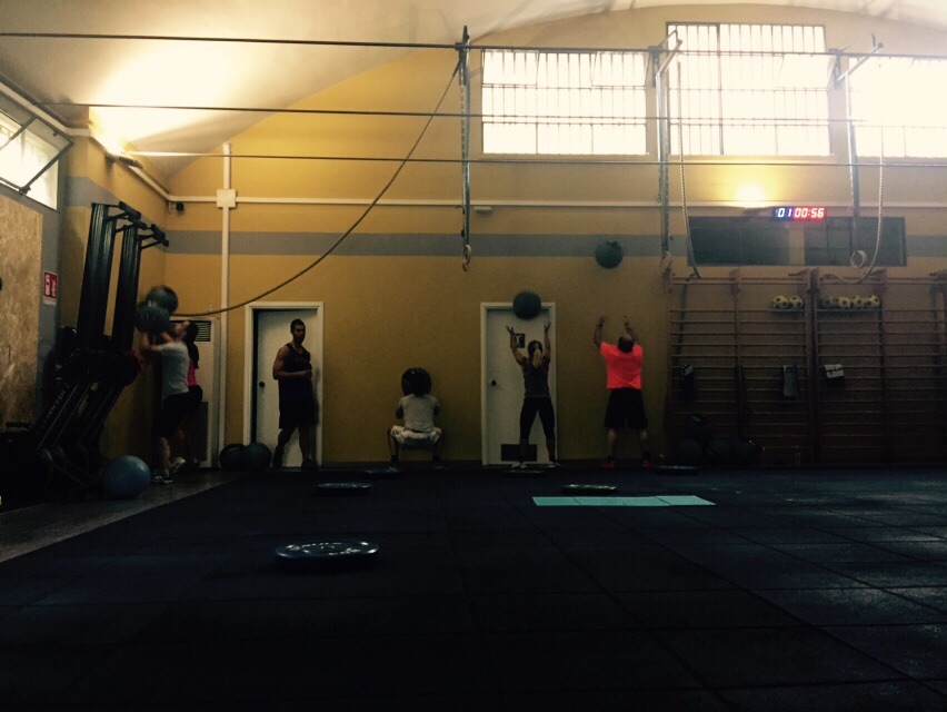Mercoledì 17/06/15 Warm Up WOD EMOM 12′ 4 Wall Ball @9/6 5 Push Up 6 Lunges plate OH @20/10 CO 5XME Strict K2E rest 1′