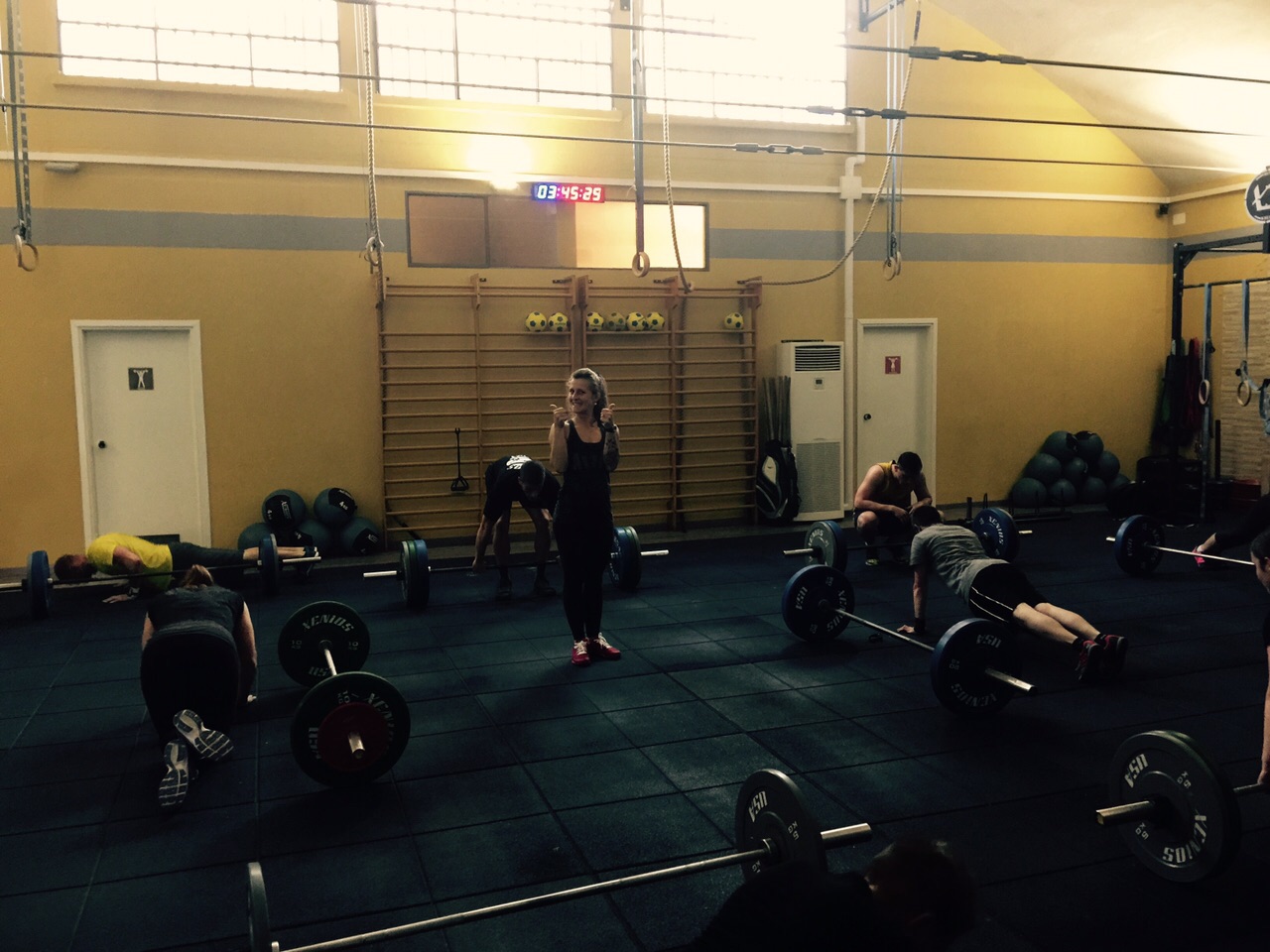 Giovedì 30/04/15 Warm Up WOD for time B.I. 60 Air Squat then 5RFT 15 A.Swing 20 Wall Ball CO 1 TABATA Push Ups rest 1′.30″ 2 TABATA Hollow rest 1′.30″ 3 TABATA Burpee