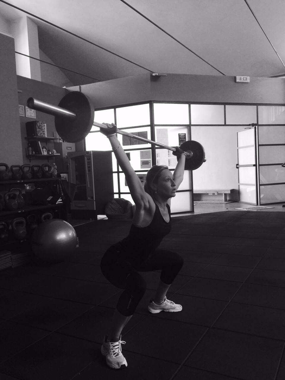 Lunedì 13/04/15 Warm Up Gymnastic & Strength 5×5 OHS with 3 in bottom position rest 1′ WOD : 6RFT L.T. 15′ 10 OHS @40/25 15 K2E 20 D.U. CO 6 X 30” HOLLOW P. 30 SUPERMAN P.